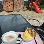 Cafe De La Creme Hotel Kuzelov met wifi in openbare gebieden biedt accommodatie op slechts 500 meter verwijderd van Windmills v Kuzelove. Er is een terras met een zitgedeelte.